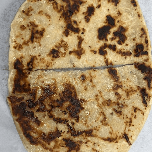 Naan stuffed with paneer (Indian cheese), mozzarella cheese, cream cheese seasoned with herbs & spices